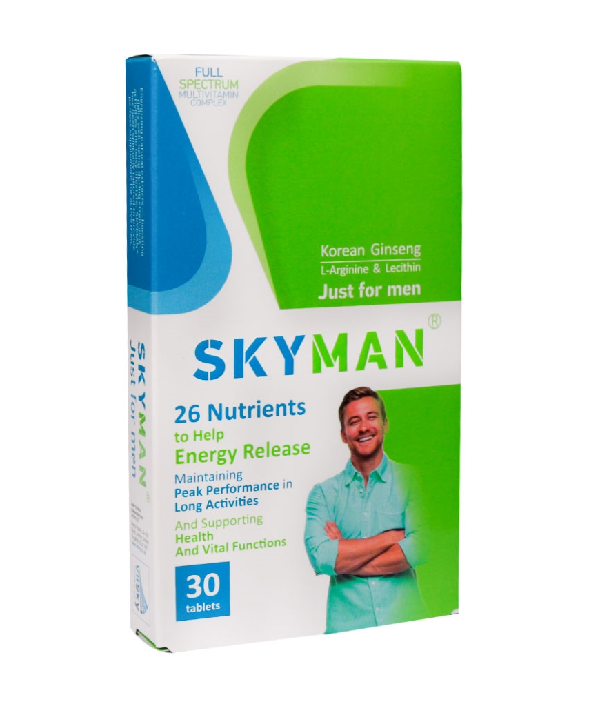قرص اسکاي من با دارا بودن ويتامينها و مواد معدني مورد نياز آقايان، يک مکمل بسيار موثر شناخته شده است. اين فراورده علاوه بر ويتامينها حاوي جينسينگ کرهاي، ال آرژنين و ليستين نيز هست که هر يک تاثيرات بي نظيري دارند. مصرف اسکاي من ويت اسکاي به افزايش انرژي و حفظ سلامتي آقايان در تمامي سنين کمک مينمايد. همچنين با کمک ترکيبات منحصر به فرد خود منجر به تقويت قواي جنسي، سلامت پروستات، افزايش متابوليسم پايه و قدرت عضلاني ميشود. البته ناگفته نماند اين فراورده با تامين ويتامينهاي مورد نياز بدن تقويت کننده سيستم ايمني نيز هست.