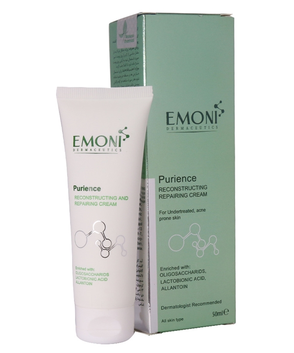 کرم مرطوب کننده و بازسازي کننده پوست چرب و مختلط اموني يک مرطوب کننده و آبرسان قوي غير کمدون زا براي پوستهاي چرب و مختلط تحت درمان آکنه است. غلظت ساليسيليک اسيد موجود در اين کرم به نحوي تنظيم شده است که سبب تنظيم ترشح غدد سباسه ميشود. همچنين کرم ترميم کننده پوست تحت درمان آکنه اموني کراتين سازي روي پوست را تنظيم مينمايد. خوشبختانه اين موارد تنها کاربردهاي کرم مرطوب کننده معرفي شده نيستند. اين محصول با دارا بودن خواص آنتي اکسيداني سبب کاهش التهاب و آزردگي پوست ناشي از درمانهاي آکنه ميشود. علاوه بر آن ترکيباتي همچون اليگوساکاريد و ساليسيليک اسيد به کار رفته در کرم ترميم کننده اموني خاصيت لايه برداري را به محصول بخشيده است.