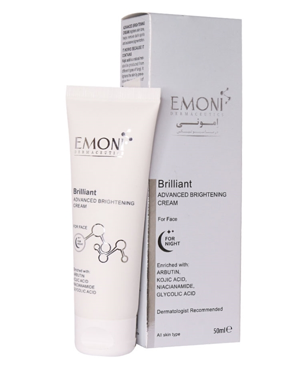 لکه‌هاي پوستي ناشي از عملکرد بيش از حد و نابه جاي سلول‌هاي ملانوسيت پوست بوده که در آن بخشي از ملانوسيت‌ها، رنگدانه بيشتري نسبت به نواحي مجاور توليد مي‌کنند. در ضد لک‌هاي برند ايموني از مهار کننده‌هاي تيروزيناز، لايه بردارهاي موضعي، ترانگزاميک اسيد و نياسيناميد به صورت ترکيبي استفاده شده است. کرم ضد لک شب برليانت اموني يک کرم ضد لک قوي است که به حذف نقاط تيره پوست کمک مي‌کند و باعث يکنواختي پوست مي‌شود. کرم شب Brilliant اموني حاوي ترکيبات ضد لک و مرطوب کننده بوده که علاوه بر اثرات ضدلک، از خشکي پوست پيشگيري مي‌کند. اين محصول براي انواع پوست مناسب است.