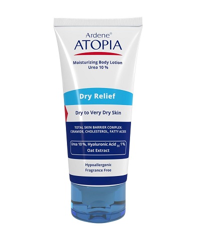 نرم کننده و مرطوب کننده بسيار قوي بدن Dry Relief ،حاوي 10% اوره مي باشد که با تامين طولاني مدت رطوبت مورد نياز پوست بسيار خشک و آسيب ديده بدن، ،موجب کاهش زبري، خشکي ،حالت فلسي و پوسته هاي ناشي از افزايش ضخامت پوست بدن خصوصا در نواحي قوزک پا، آرنج و زانو ميگردد و بدون ايجاد چسبندگي و چربي اضافي بر روي پوست بدن، با تامين رطوبت مورد نياز باعث التيام و تسکين پوست و رفع خارش و زبري مي شود.