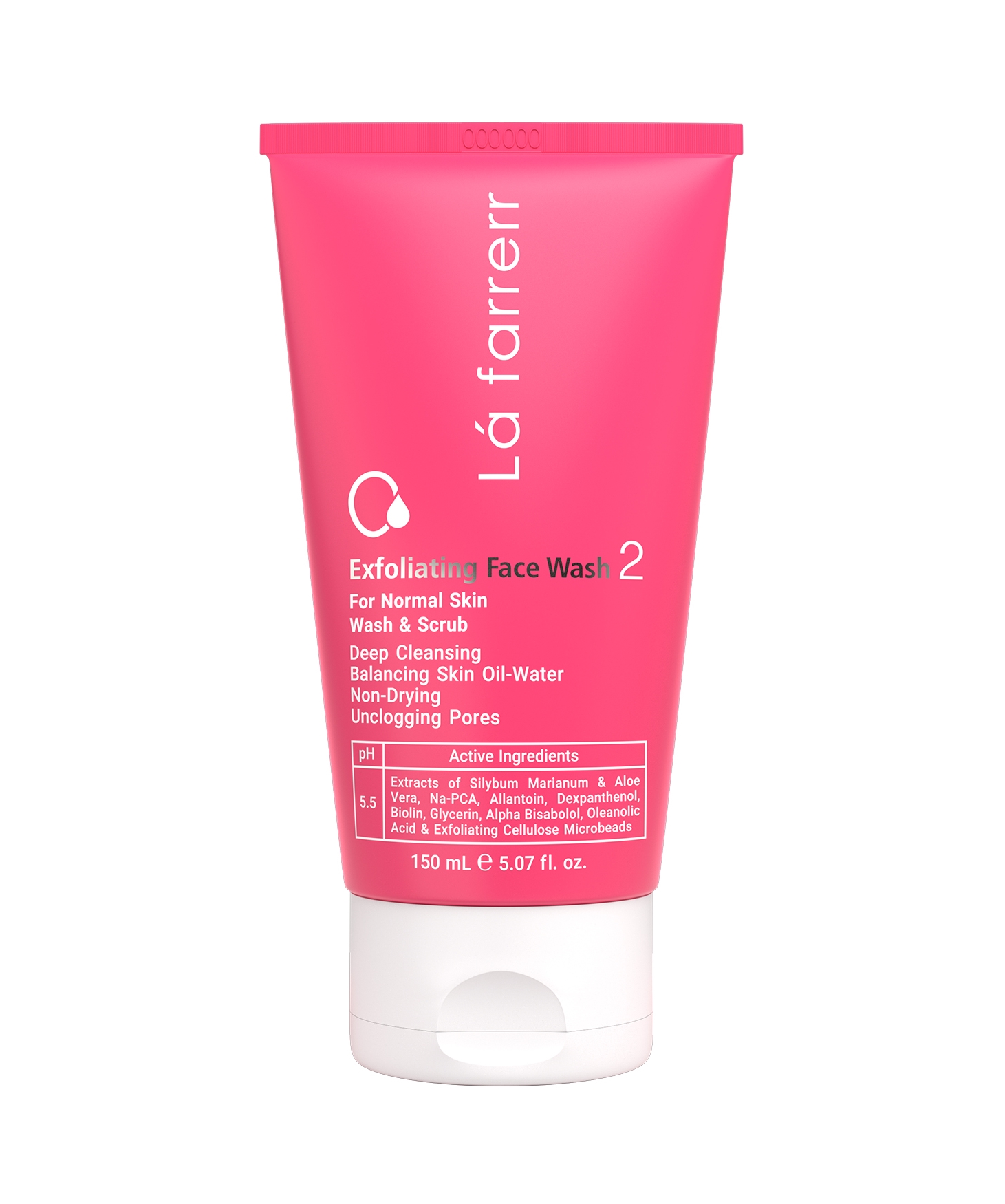 ژل شستشوي صورت مخصوص پوستهاي معمولي لافارر حاوي اسکراب (دانههاي لايهبردار)، آلانتوئين، بيولين، عصاره آلوئهورا، دکسپانتنول، گليسيرين، عصاره خارمريم و سديم-PCA ميباشد که موجب لايه برداري، حذف سلولهاي مرده و آلودگيها از سطح پوست، رفع جوشهاي سرسياه، پاکسازي منافذ پوست و جلوگيري از ايجاد آکنه ميشود. همچنين اين محصول با رطوبت رساني بالا و افزايش رشد و حفظ باکتريهاي مفيد باعث نرمي و لطافت پوست ميگردد.
