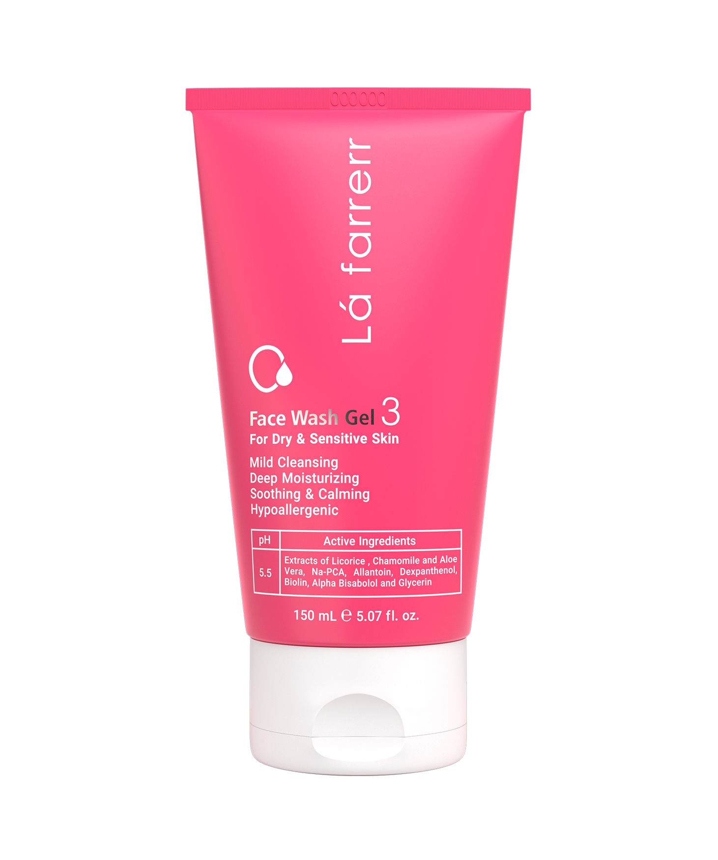 ژل شستشوي صورت مخصوص پوست هاي خشک و حساس لافارر حاوي آلانتوئين، بيولين، عصاره آلوئهورا، دکسپانتنول، گليسيرين، آلفابيزابولول، عصاره شيرين بيان، عصاره بابونه و سديم-PCA است که موجب بازسازي پوستهاي خيلي خشک و شکننده، تسکين و کاهش التهاب و قرمزي پوست، رطوبت رساني عميق و افزايش رشد باکتريهاي مفيد پوست ميشود.