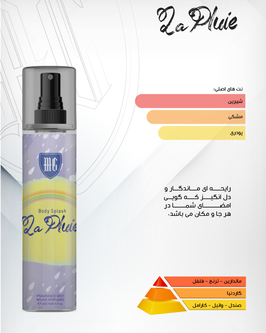 بادي اسپلش (body splash) محصولي نسبتا تازه وارد به بازار محصولات آرايشي و بهداشتي است که هنوز خيليها با کاربرد آن و تفاوتش با ساير خوشبوکنندههاي بدن، آشنا نيستند. بادي اسپلش اسپريهاي خوشبوکننده مخصوص بدن هستند که نه عطر هستند و نه ادکلن، اما کاملا مايع و رقيق بوده و در ترکيبات آنها از آب، الکل و ترکيبات طبيعي استفاده ميشود. اين محصول دست کمي از ادکلن ندارد، البته ماندگاري کمتري نسبت به آنها دارد. بادي اسپلش با رايحههاي خوبي که دارند به سرعت در ميان لوازم بهداشتي بانوان و حتي آقايان جاي ميگيرند.