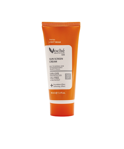 کرم ضد آفتاب رنگي وچه يک محافظت کننده قوي پوست در برابر اشعه‌هاي مضر UVA و UVB است از پيري زود رس پوست ناشي از آفتاب جلوگيري مي‌کند. اين کرم ضد آفتاب داراي بافت سبک و پوشش دهي يکنواخت است. ضد آفتاب رنگي فاقد چربي +SPF50 مناسب پوست خشک و نرمال 40ميل وچه بدون چربي مي‌باشد و پس از استفاده احساس هيچگونه سنگيني بر روي پوست باقي نمي‌گذارد. اين محصول خشکي و التهاب پوست صورت را رفع مي‌کند و نرم کننده و رطوبت رسان نيز مي‌باشد.