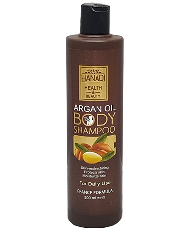 روغن آرگان از هسته درخت آرگان بدست مي آيد که به دليل خواص زياد آن ، به روغن طلا معروف شده است . شامپو بدن حاوي روغن آرگان هانادي ضمن شستشوي كامل بدن ، در از بين بردن سلول‌هاي مرده‌ي پوست و طراوت بخشي و نرم شدن آن بسيار موثر است . همچنين روغن آرگان موجود در اين محصول ، سرشار از ويتامين A، امگا 6 و امگا 9 است که موجب تغذيه و لطافت پوست بدن مي شود . شامپو بدن حاوي روغن آرگان هانادي متشکل از مواد ارگانيک طبيعي مي باشد که PH پوست بدن را متعادل مي کند و پوست را مرطوب نگه مي دارد.