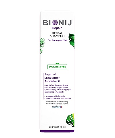 شامپوي گياهي مخصوص موهاي آسيب ديده بيونيج، با حفظ و کنترل سبوم (چربي) نرمال پوست سر، ضمن آبرساني و تسکين پوست سر، از مشکلات ناشي از آسيب ديدگي مو از جمله ريزش، نازک شدن تار موها، شوره، خارش پوست سر و … نيز پيشگيري مي‌کند. همچنين وجود ترکيبات تغذيه کننده و ترميم کننده نه تنها موجب ترميم آسيب ديدگي موها مي‌گردند، بلکه عمر کراتين موهاي کراتينه شده را افزايش مي‌دهند.