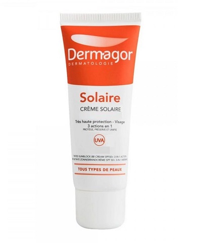 ضد آفتاب درماگور با اس پي اف 50+ فاقد چربي بوده و پوشش دهنده و محافظت کننده پوست در برابر طيف وسيعي از اشعههاي UVA است.