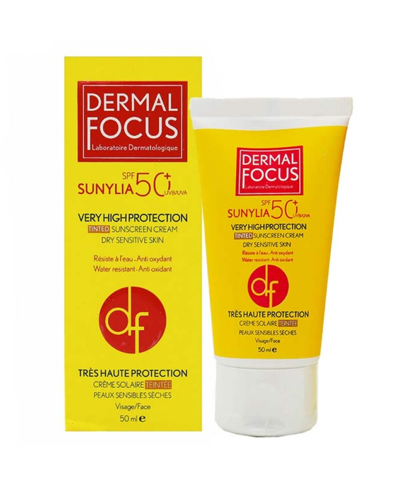 کرم ضدآفتاب سانيليا رنگي پوست خشک درمال فوکوس Dermal Focus Sunylia Tinted Sunscreen for Dry Skin ضد آفتاب رنگي مناسب براي پوست هاي خشک و حساس از سري محصولات درمال فوکوس است. کرم ضد آفتاب سانيليا پوست خشک درمال فوکوس رنگي يک کرم با اثرات محافظتي بالا در برابر اشعه هاي مضر خورشيد است.