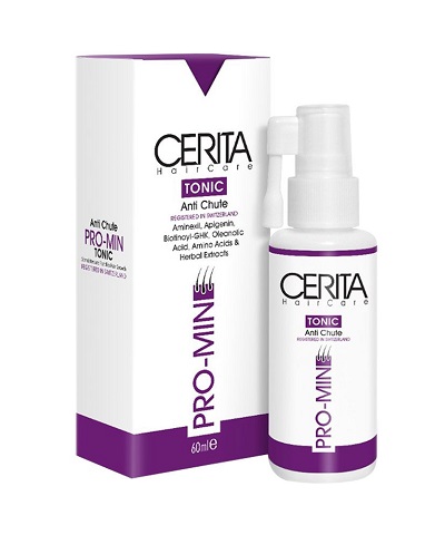 تونيک تقويت کننده مو سريتا مدل Pro-Min، داراي يک فرمولاسيون منحصر به فردي است که نه تنها از ريزش مو جلوگيري مي کند، بلکه باعث تحريک رويش مجدد مو هم مي شود و ضخامت تارهاي آسيب ديده مو را هم بيشتر مي کند. يکي از ترکيبات موجود در اين تونيک آمينکسيل است. آمينکسيل فرم جديد ماينوکسيديل مي باشد ماينوکسيديل بر روي چرخه رشد مو اثر مي گذارد و باعث طولاني تر کردن سيکل رشد مو (افزايش مدت زمان آناژن) مي شود.